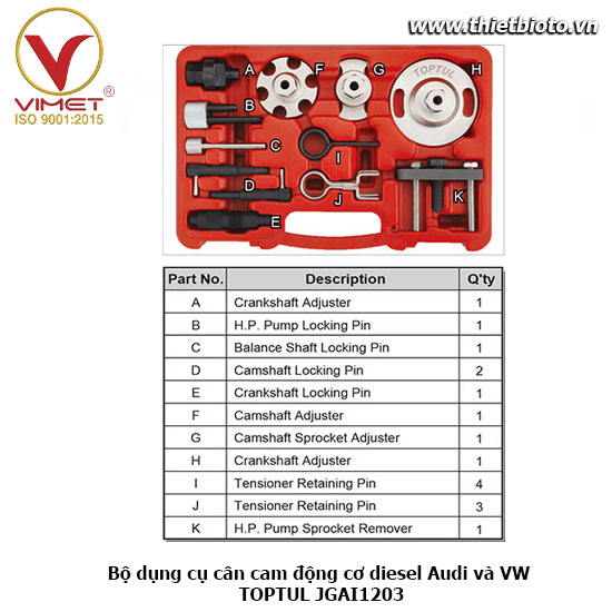 - Bộ dụng cụ được thiết kế chuyên dụng để canh chỉnh thời điểm động cơ cho các dòng xe thuộc hệ VAG (Volkswagen - Audi - Seat - Škoda).